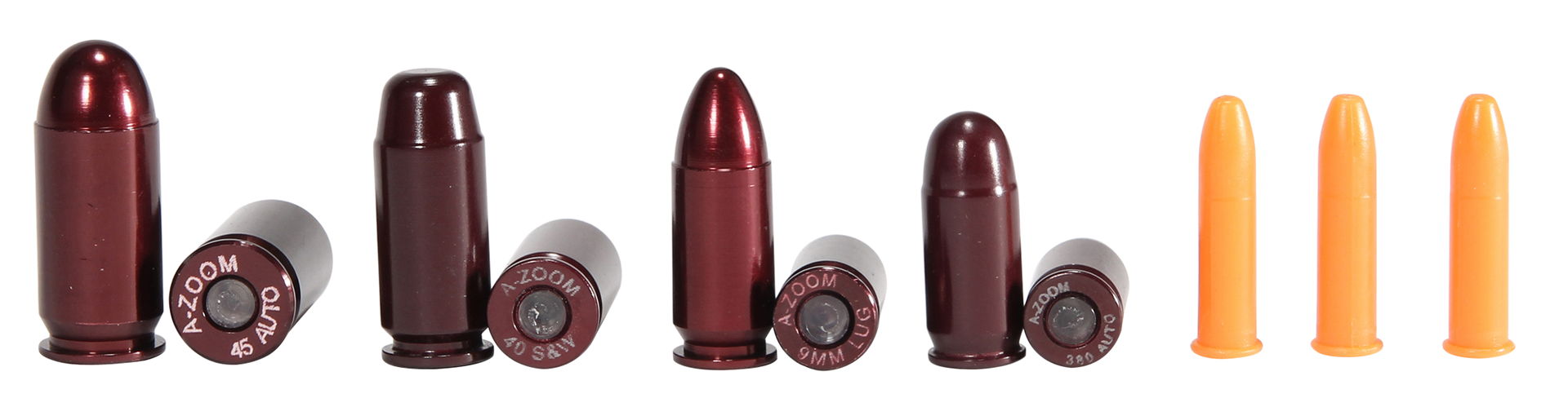 A-zoom variety pack is designed to give nra instructors all the most popular handgun training calibers in one convenient pack.Includes 3-.22lr; 2-.380; 2- 9mm; 2-.40 s&w and 2-.45 acp.