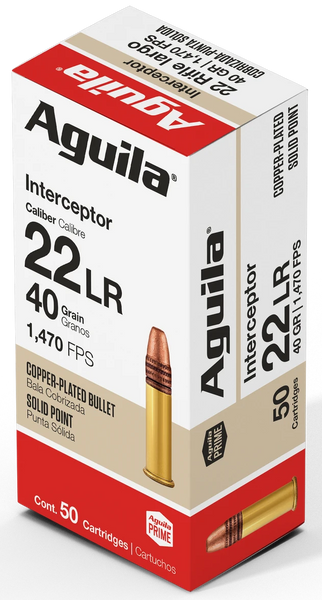 Interceptor is engineered for hunting, target shooting, and ultimate performance.The ultra-premium high velocity copper-plated solid point travels at a 1,470 feet per second and makes an excellent choice.