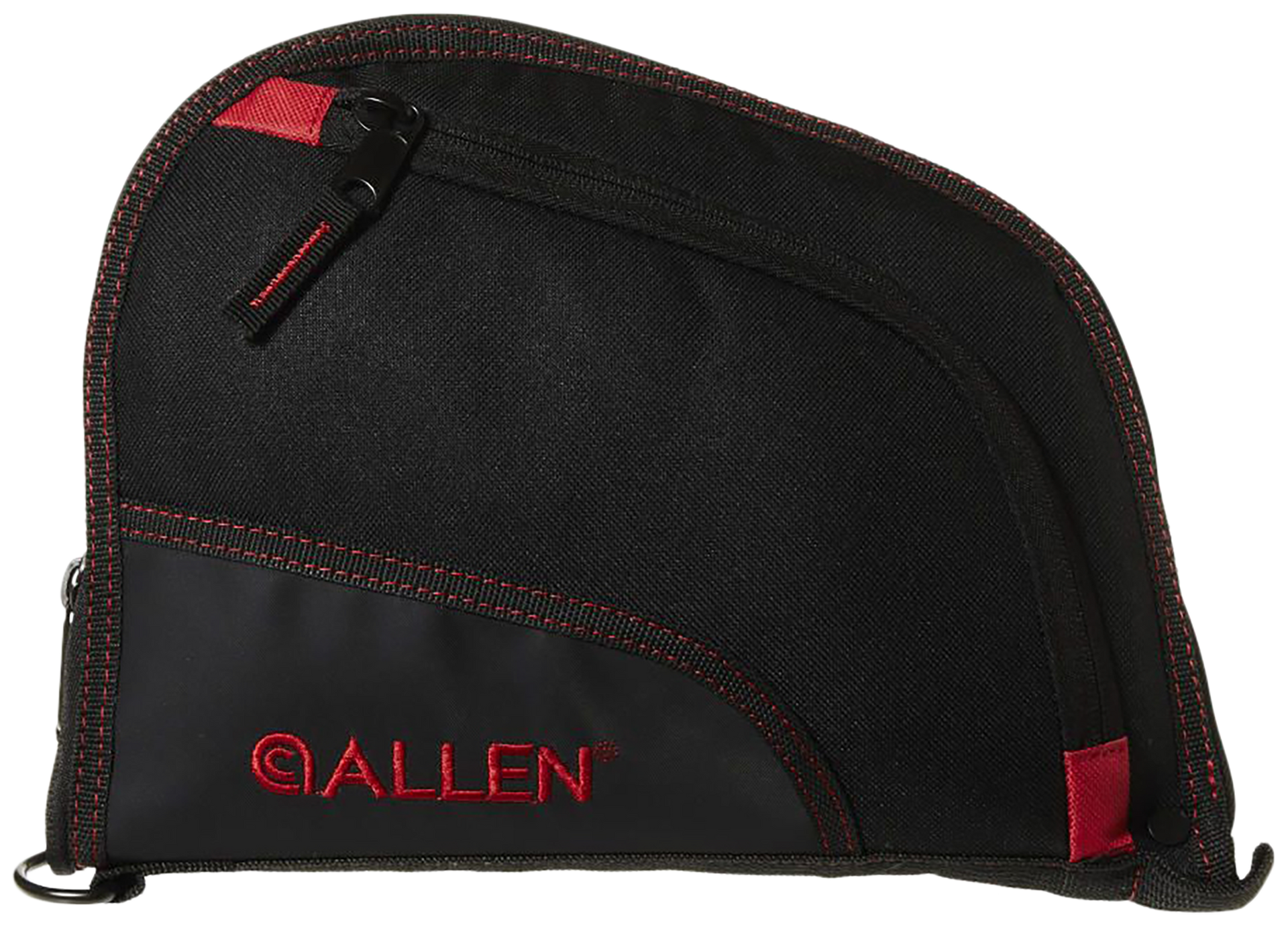 The auto-fit handgun/pistol case by allen fits most handguns up to 9" and features thick foam padding, a soft knit interior lining with a muzzle sleeve.The outside of the case is constructed of rugged endura fabric and contrast accent stitching/embroidery.A large pocket holds a spare mag, eye/ears or other accessories.The case is lockable.Fits most semi-automatics with a barrel length up to 5" and most revolvers with a barrel length up to 4".Interior dimensions: 9" x 7".