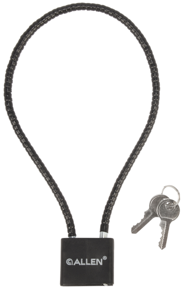 This cable lock works for shotguns, rifles, and handguns.It comes with two keys.