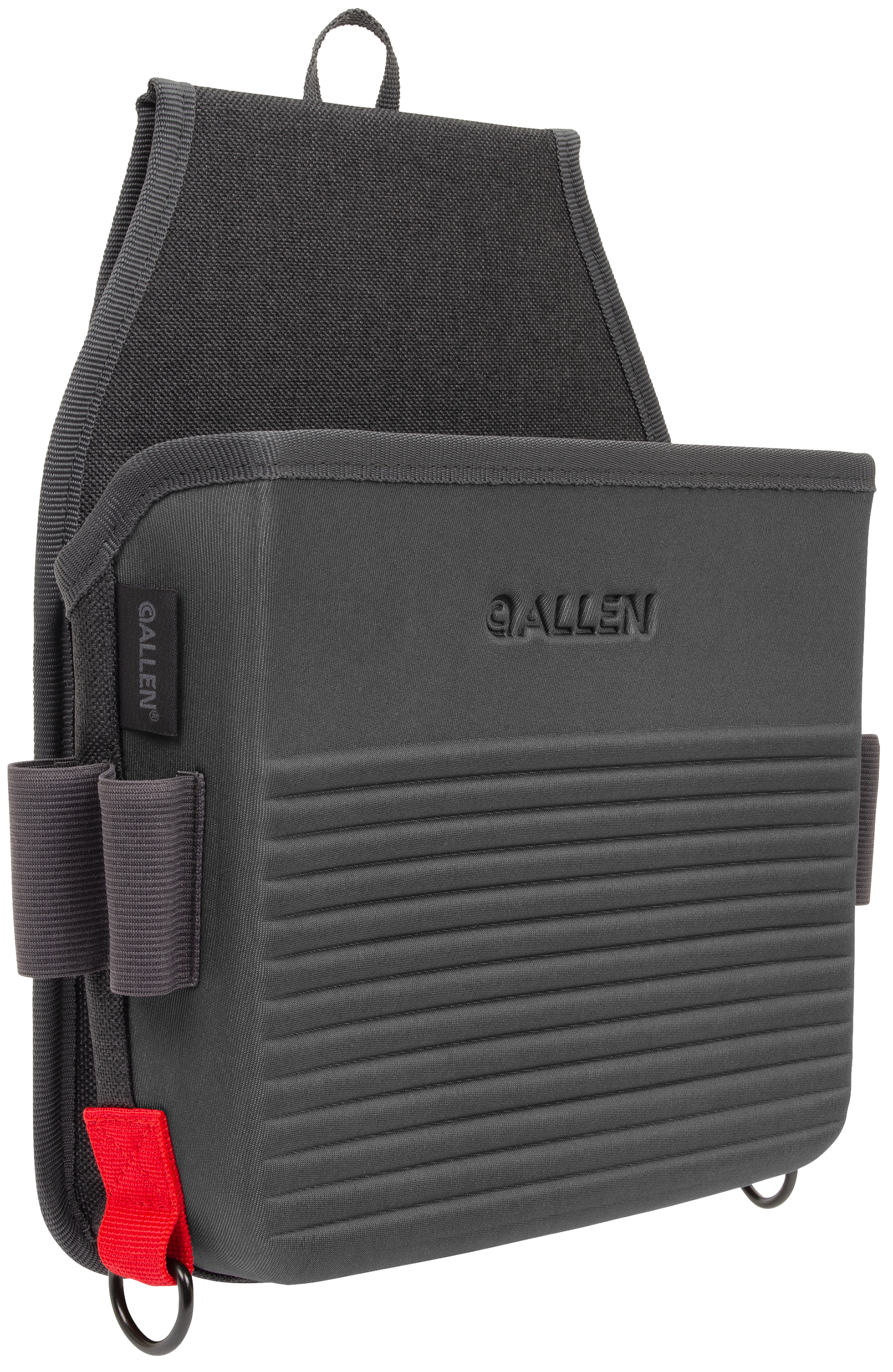 The competitor shotshell bag is made from a durable eva with two d-rings for attaching accessories, four elastic loops for choke tubes or extra shells, and a 2" webbed belt with quick release buckle that adjusts up to 52".It holds up to 50 loose shotgun shells or spent hulls.