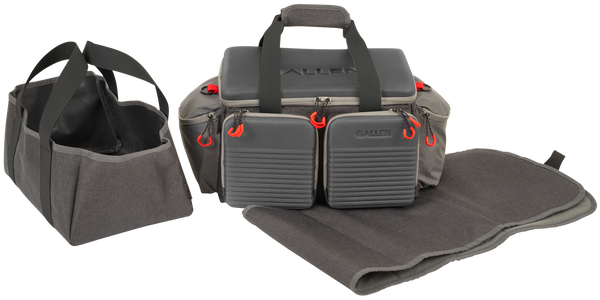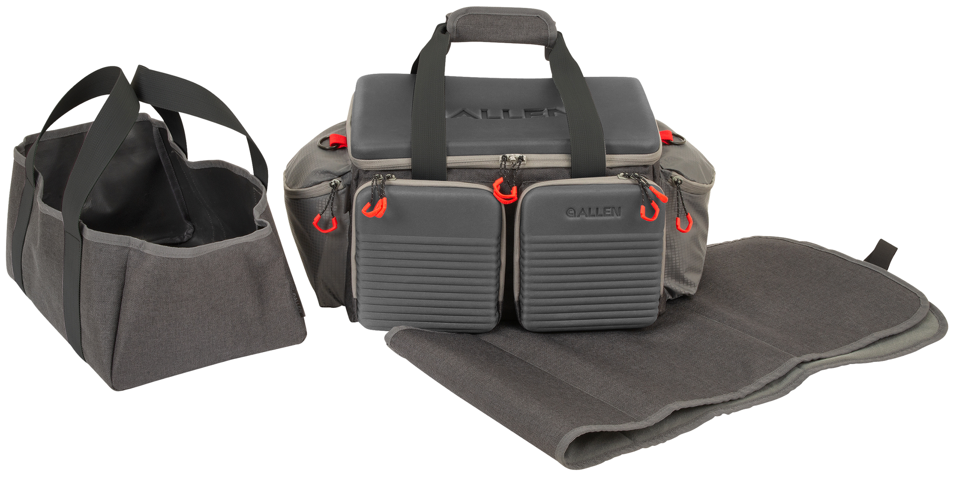 The competitor range bag by allen allows you to hold everything you need and more.Designed with a large zip around the opening on the main compartment and external zipper pockets allow for the max amount of storage.Five elastic loops hold extra shells or choke tubes.The included rollout gun mat allows you clean and assemble or disassemble your firearms on a protective mat.The adjustable shoulder strap and webbed carry handles make for easy transport even when the rage bag is fully loaded.The case also includes an internal tote for organization or shell caddy that can be removed.