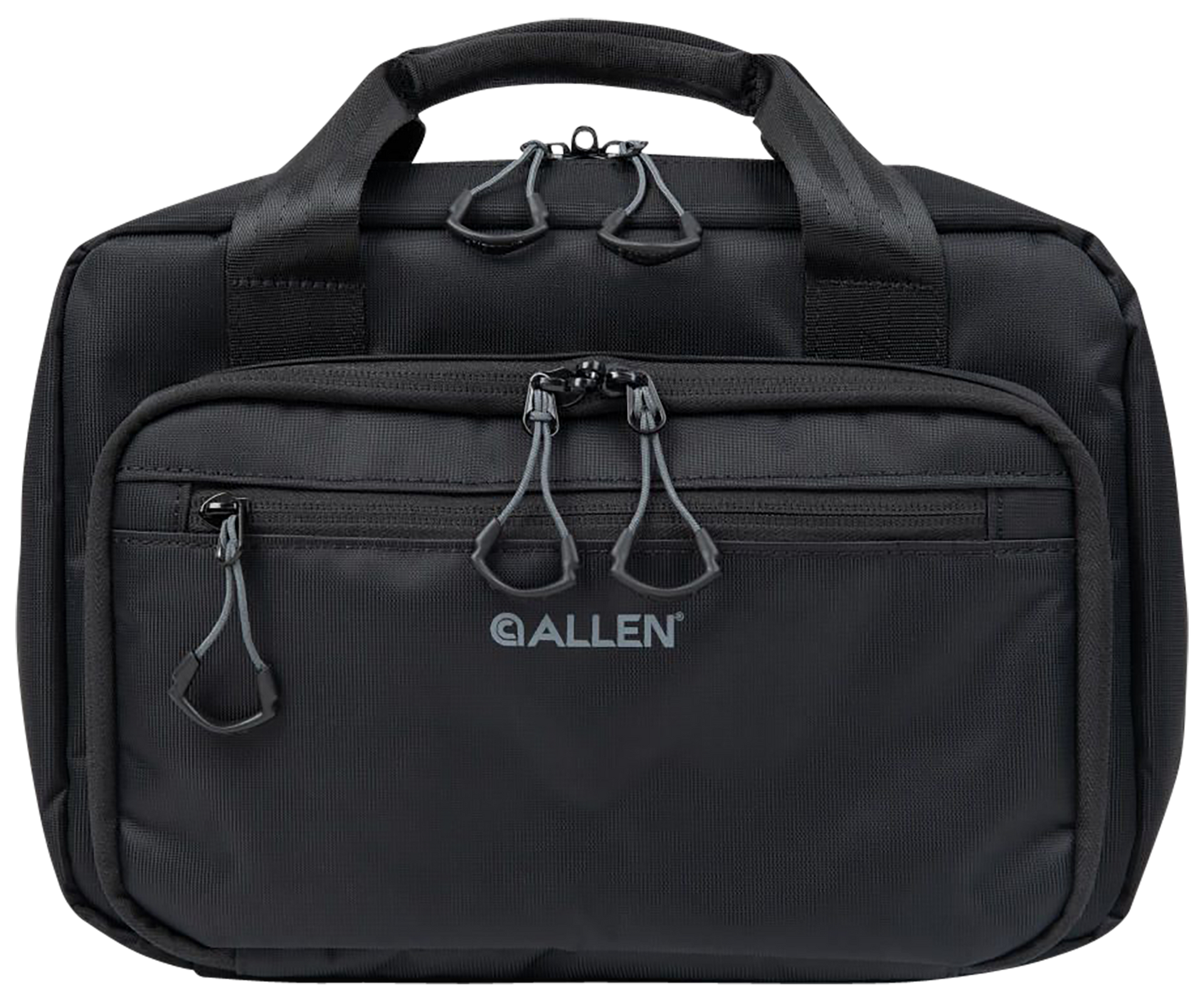 The allen company double pistol case, made of a tough, high performance ballistic nylon exterior, provides you with a solution designed to hold 2-handguns (subcompact under 6-inches), 7-magazines, and additional shooting accessories.Generously padded for the protection your investment requires, the case is fully lined while offering lockable nesting zippers on both the pistol and magazine compartments.