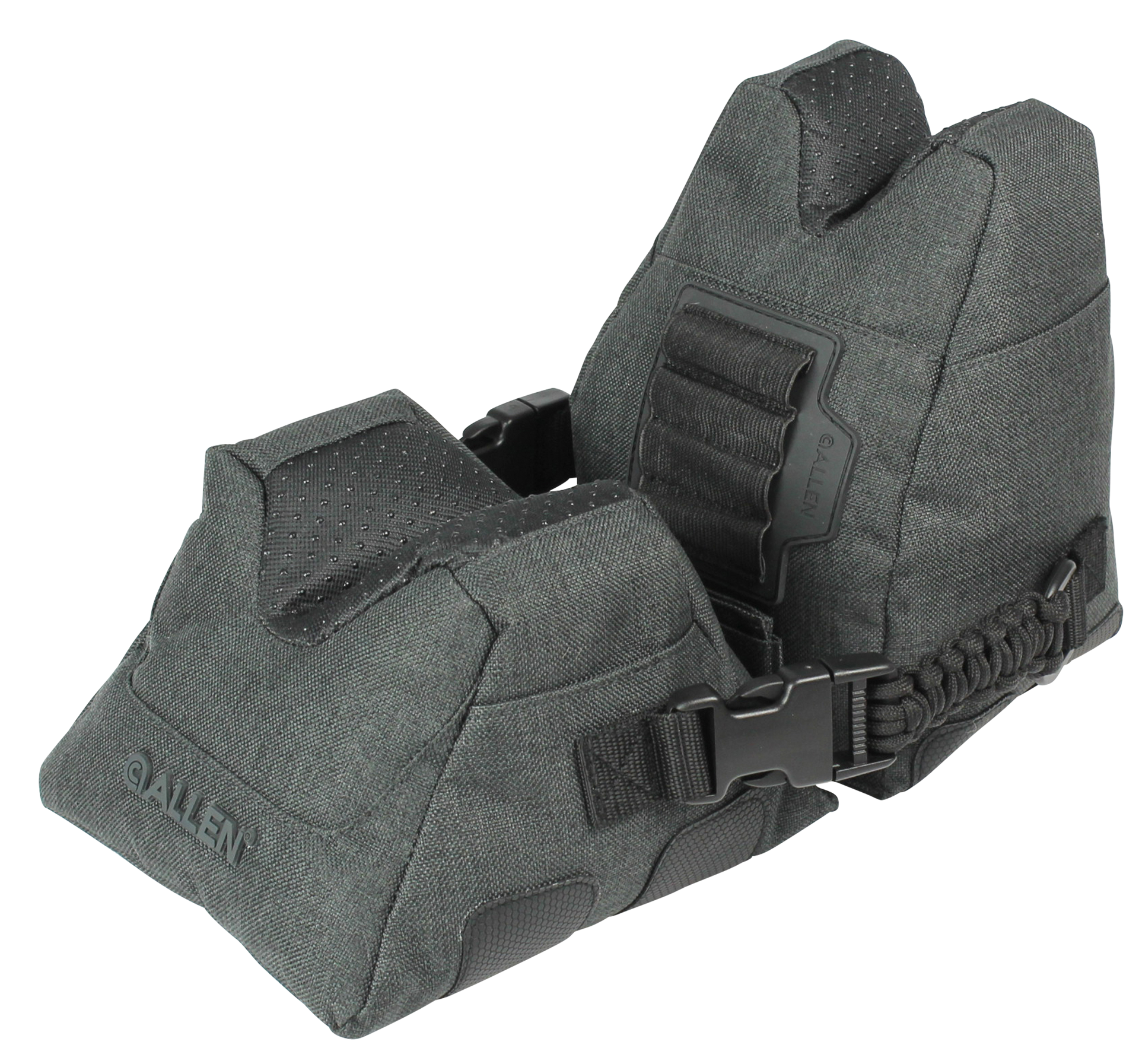 The eliminator front / rear range bag combo makes sight-in easier.The gun cradle fabric found in the valleys of the front and rear rest has just the right amount of resistance.The gun can easily be moved to acquire the target, yet stays steady on the semi-tacky surface.The two components are connected for carrying, utilizing straps with side-release buckles.One strap is made up of a paracord...View more