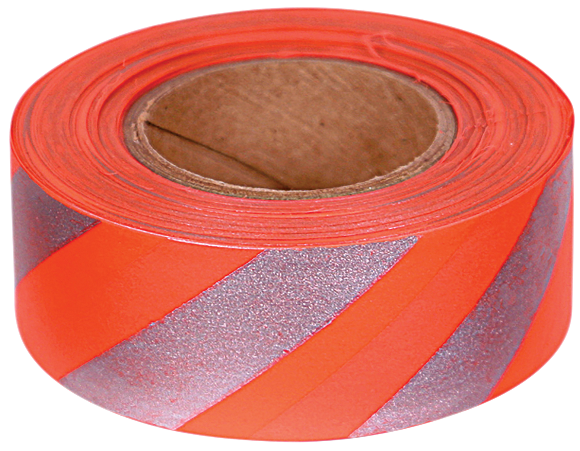 The reflective flagging tape is hi-vis orange flagging tape with reflective striping.150 foot roll.
