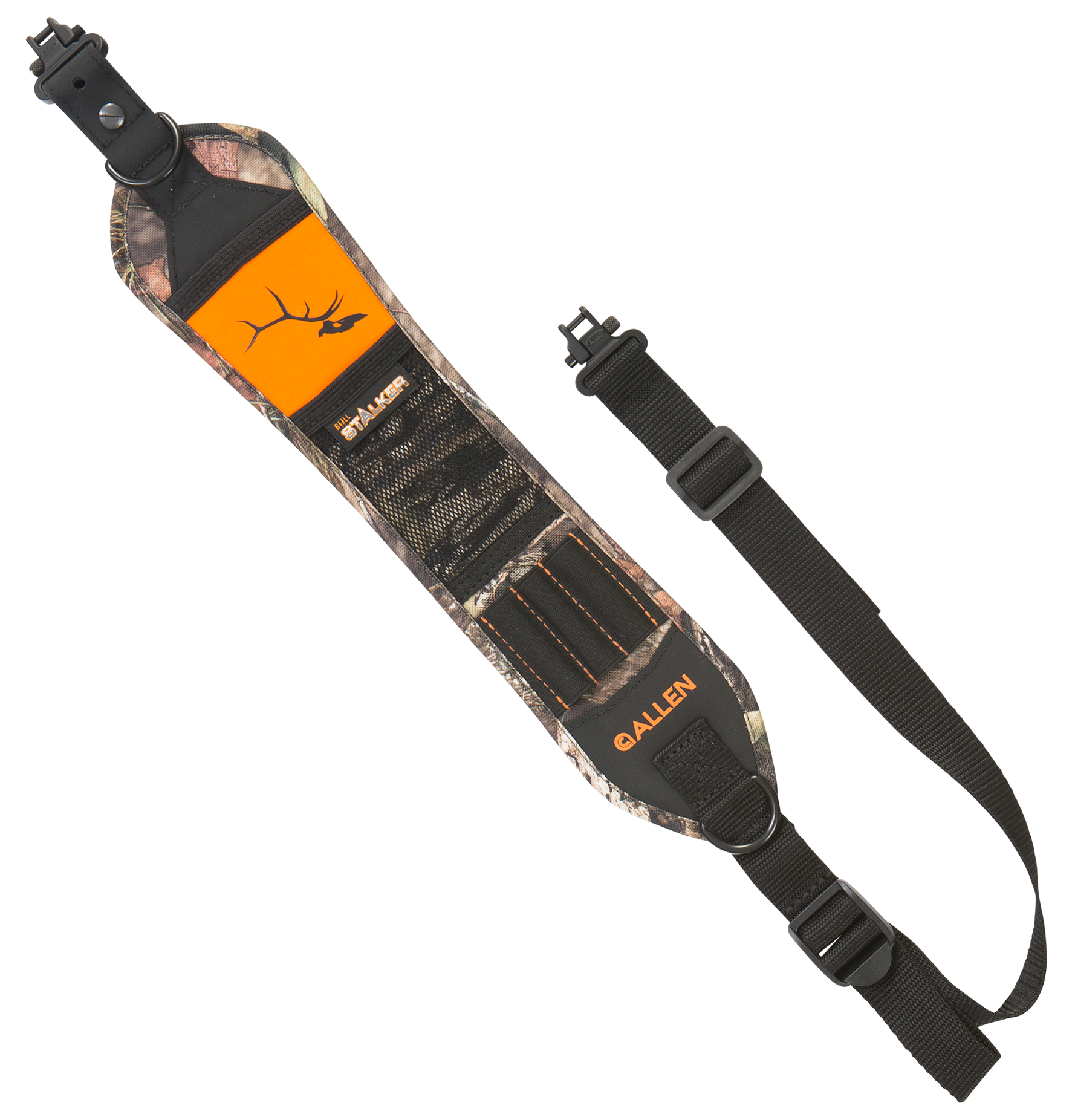 The hypa-lite bull stalker rifle sling with swivels is a sling designed with elk hunting in mind.The sling begins with ultra-durable and lightweight hypalon construction with molded, low-density foam and a non-slip backing.The front of the sling features mossy oak mountain country camo and blaze orange accents in quiet fabric, plus a stretch mesh pockets for your windicator and diaphragm calls, plus three spare cartridge loops.Includes d-rings to attach accessories, an adjustable ladder lock buckle and swivels tested up to 500 pounds.