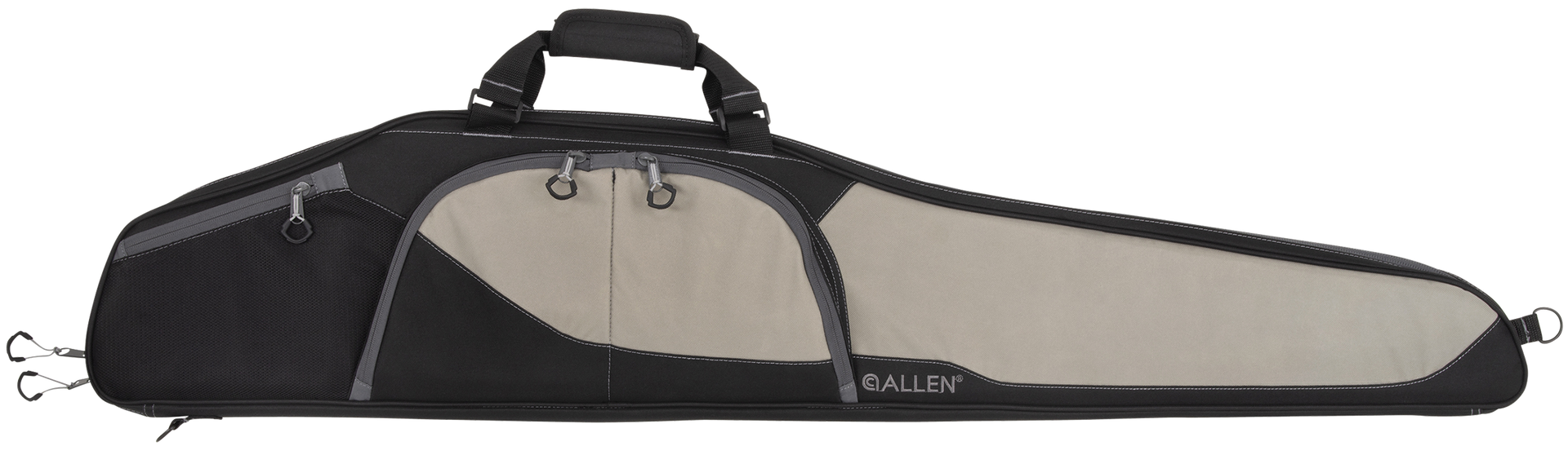 The sawatch gun case is constructed of rugged endura with dense foam, two zippered accessory pockets, one easy view mesh pocket, locking zipper, hanging loop, padded handle and plush tricot lining.