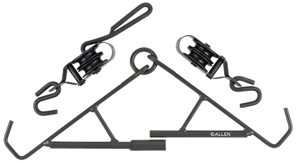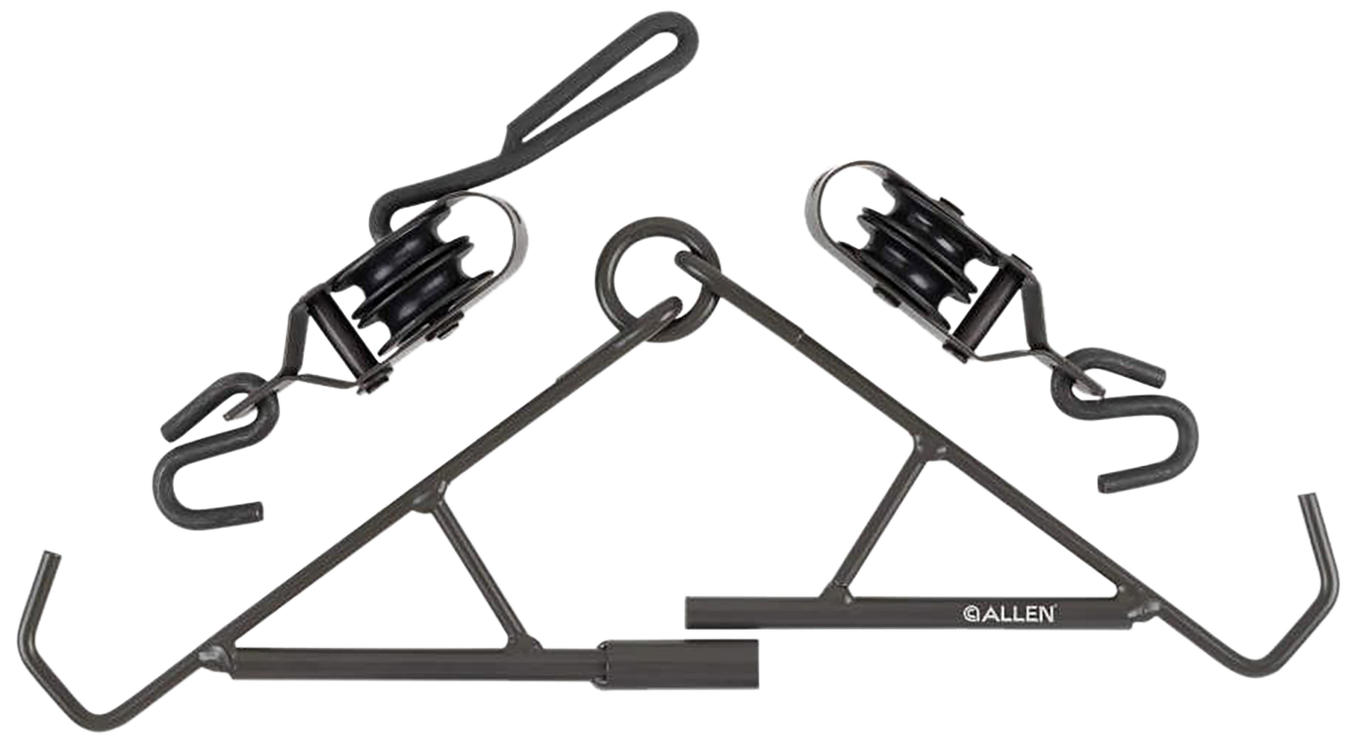 The allen company takedown gambrel and hoist kit is the ultimate solution for hunters seeking convenience and efficiency during game processing.Engineered to hold medium-sized game up to 500 lbs.