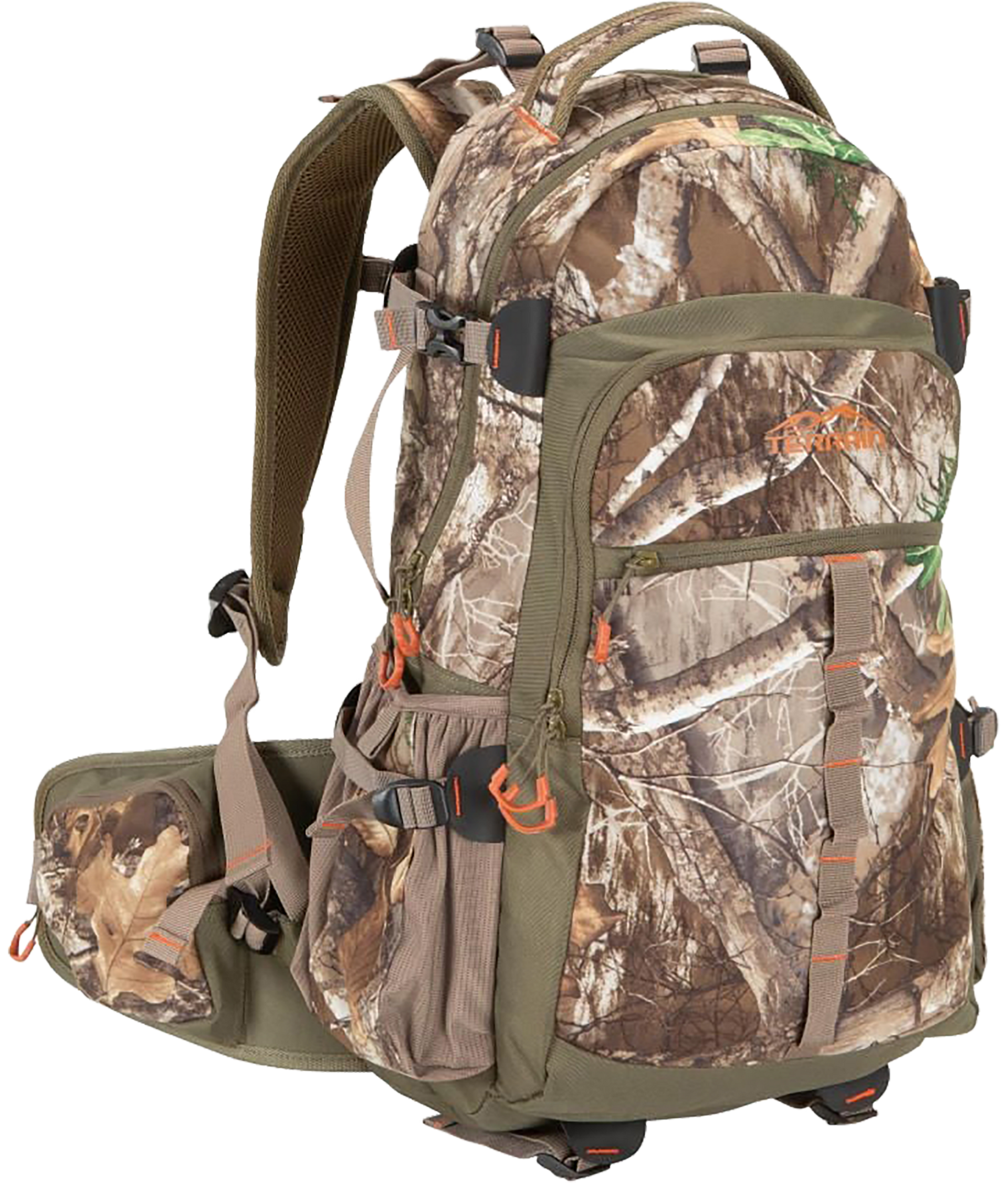 The terrain reservoir 1800 daypack is built for a day trip in the mountains.Made from a quiet fabric in realtree edge camo and has dual water bottle holders.