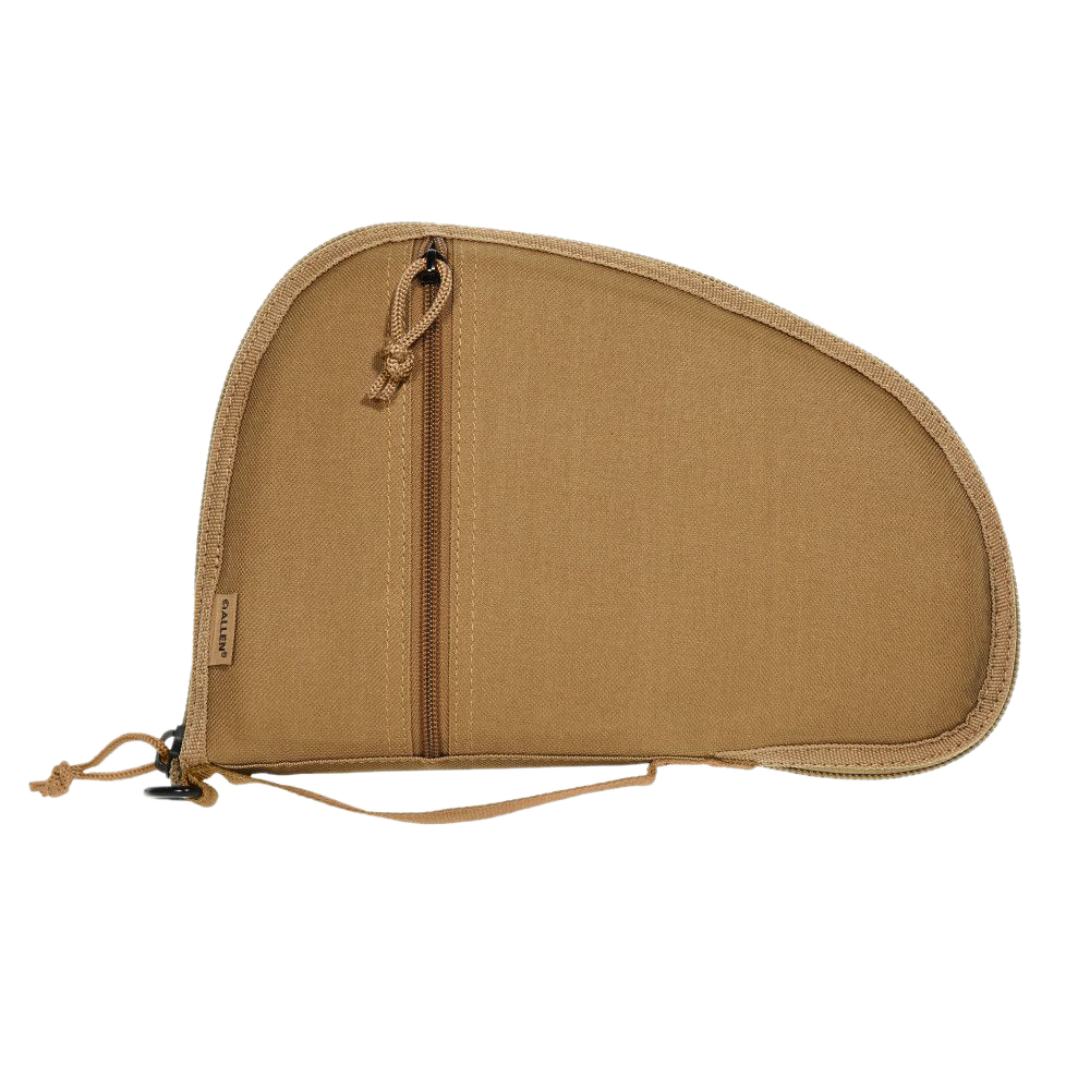 The torrey handgun case by allen is a soft case that will fit a wide variety of semi-auto and revolver type handguns.This soft case features a large, zippered pocket on the front that works great for cleaning accessories or a spare magazine.The torrey cases also come with a convenient carrying handle on the back of the case.The main zipper runs two-thirds of the way around the case allowing it to open fully, and fold flat to be used as a pistol rug at the range.Inside the case features a muzzle pocket that you can inset the barrel or front part of the slide into to help keep the handgun from sliding around when you are transporting the firearm.