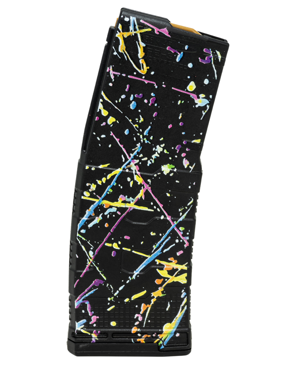 The custom printed mod-3 neon splattered ar-15 magazine elevates firearm experience with this uniquely custom printed magazine.Crafted with precision and attention to detail, this mag not only offers reliable performance but also adds a distinctive touch to firearms.Caliber: 5.56 NATOCapacity: 30+1Model: MOD-3Material: PolymerCapacity: 30+1View more