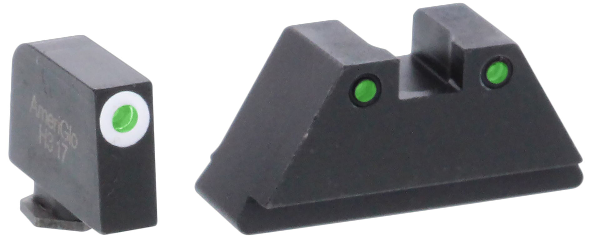 For co-witness with a pistol mounted red dot or use with a suppressor, choose optic-compatible sight sets from ameriglo.Gl-152 xl tall set green tritium white outline, green tritium black outline.Front sight: 0.315" rear sight: 0.394".Fits all glock models (excluding 42, 43, 48) and glock mos.Compatible with aimpoint acro/holosun 509t/steiner mps.