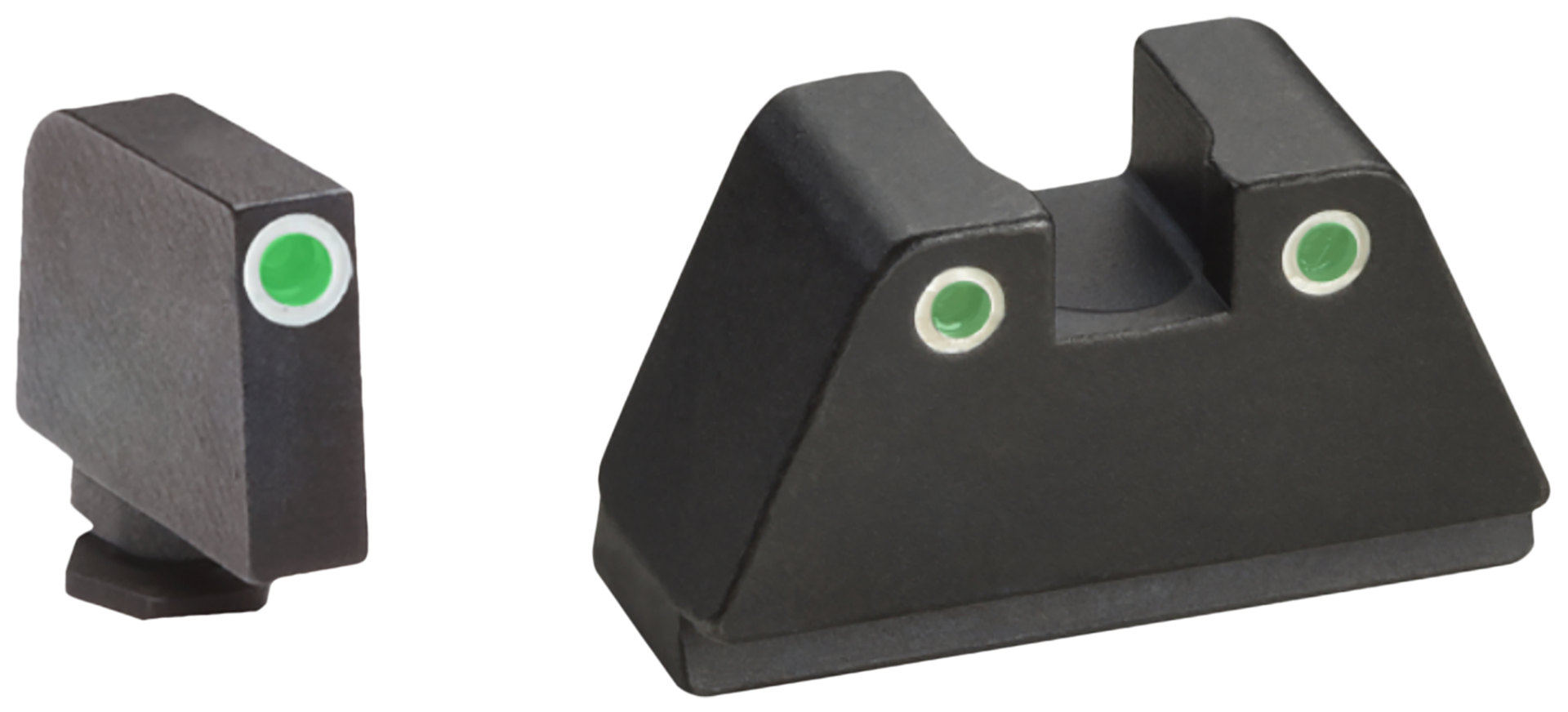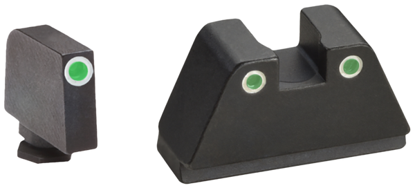 Ameriglo optic compatible sets provide a precise, elevated co-witness sight picture for slide-mounted red dot optics and serve as reliable back-up sights.Items also available individually.Gl-329 xl tall set green tritium white outline, green tritium white outline.Front sight width: 0.125" front sight height: 0.315" rear sight: 0.394".Fits all glock models (excluding 42, 43, 48) and glock mos.Compatible with aimpoint acro/holosun 509t/steiner mps.Rear Color: Green/Tritium White OutlineType:...View more