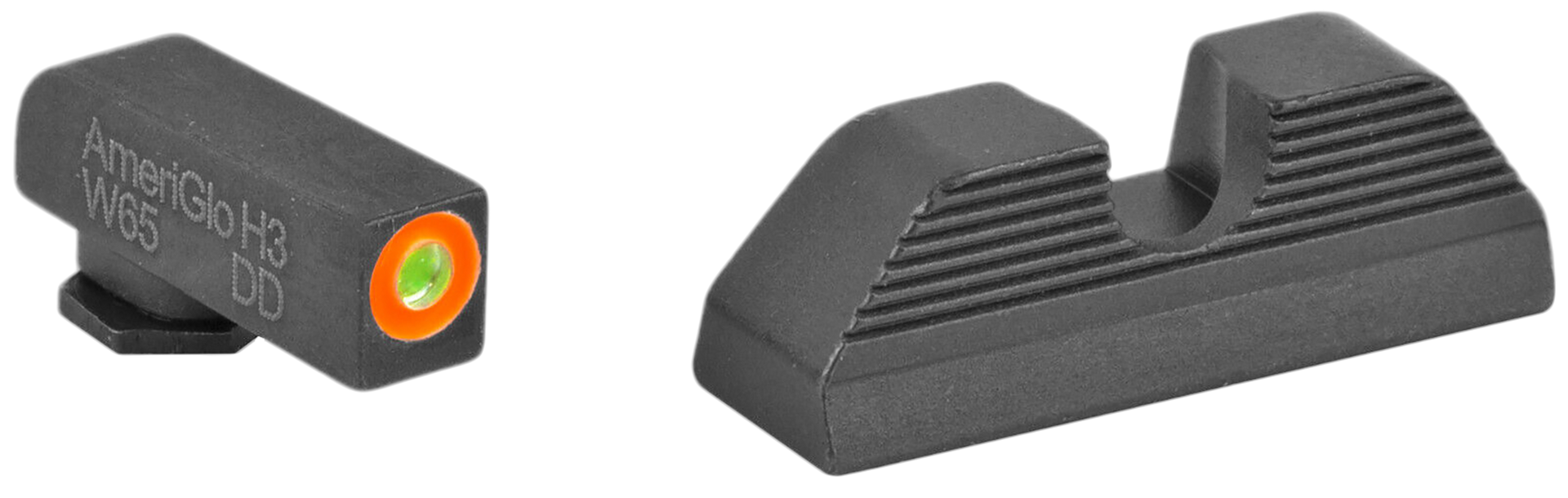 Ameriglo protector sights are designed for quicker front sight acquisition and concentration on the front sight blade.The black, serrated rear sight reduces glare and offers assistance in one-hand slide manipulations, while the front sight offers a tritium illumination and a proglo outline in lumigreen or orange for an enhanced aim point.Ideal for any conceal carry or personal defense weapon.Fits: glock gen 1-4 9mm/.40/.380/gen 5 10mm/.45/glock mos.Front sight width: 0.140" front sight height: 0.165" rear sight height: 0.256"