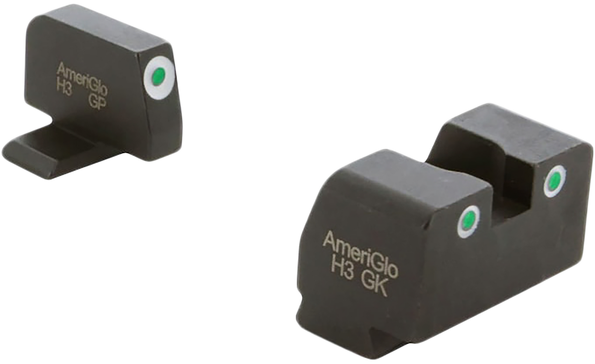 Ameriglo optic compatible sets provide a precise, elevated co-witness sight picture for slide-mounted red dot optics and serve as reliable back-up sights.Items also available individually.Xd-181 sight set green tritium white outline, green tritium white outline.Front sight width: 0.140" front sight height: 0.350" rear sight height: 0.423".Fits springfield armory xd (excludes osp).