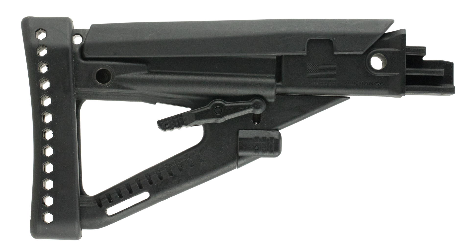Made in the usa, this archangel opfor ak-series 4 position adjustable buttstock fits most stamped receiver ak's.The buttstock includes a seven position adjustable cheek riser allowing an optimum sight picture with both iron and glass sights.The receiver extension, and the adjustable buttstock, feature molded in qd sling swivel inserts at four points, giving an operator multiple ambidextrous sling options.