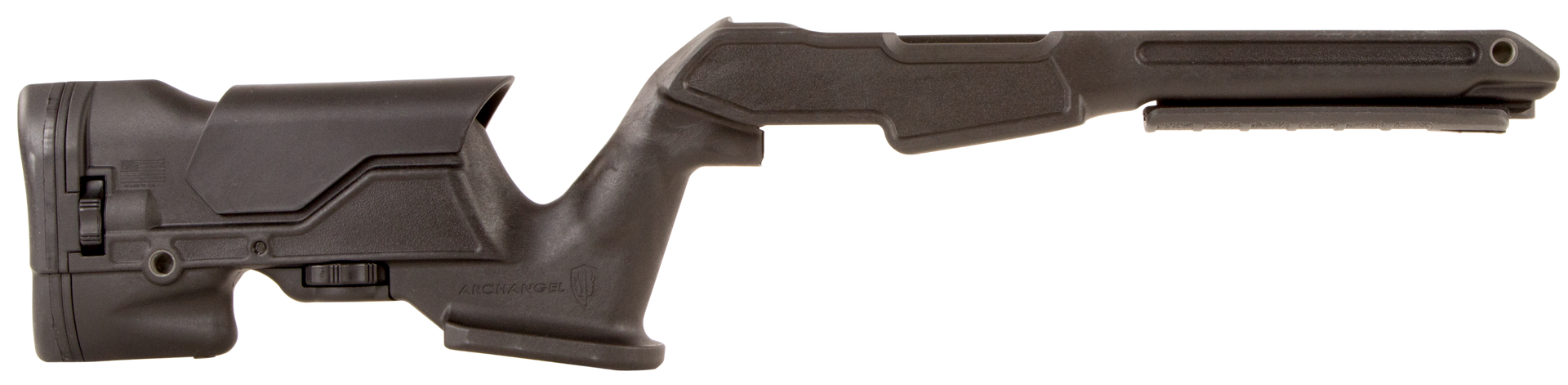 Made in the usa, the archangel precision stock for the ruger 10/22 is a feature packed, fully adjustable stock that's perfectly at home on the bench, or in the field.The click adjustable cheek riser with a 1.625 of travel in 25 positions and adjustable length of pull of 13 - 14.25 with 25 positions provides maximum adjustable fit for large shooters, small shooters, and everyone...View more