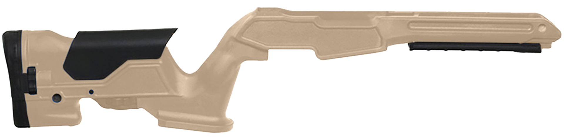 Made in the usa, the archangel precision stock for the ruger 10/22 is a feature packed, fully adjustable stock that's perfectly at home on the bench, or in the field.The click adjustable cheek riser with a 1.625 of travel in 25 positions and adjustable length of pull of 13 - 14.25 with 25 position provides maximum adjustable fit for large shooters, small shooters, and everyone in between.The ambidextrous gooseneck style stock with palm swells and grooved and textured forend provide superior ergonomics and enhanced weapon control.A integrated picatinny rail is molded into the bottom of the forend and includes a sliding textured, full length rail cover.The unique flared magwell makes magazine changes quick and easy, especially for extended magazines.The buttstock features an off-hand support hook and a soft rubber recoil pad.The grip features a locking storage compartment, and a flared base.The inlet has been designed to be a snug, drop in fit*, for maximum accuracy potential.The barrel channel will fit and free-float all barrels up to.920 diameter, and features our patented harmonic pressure device.