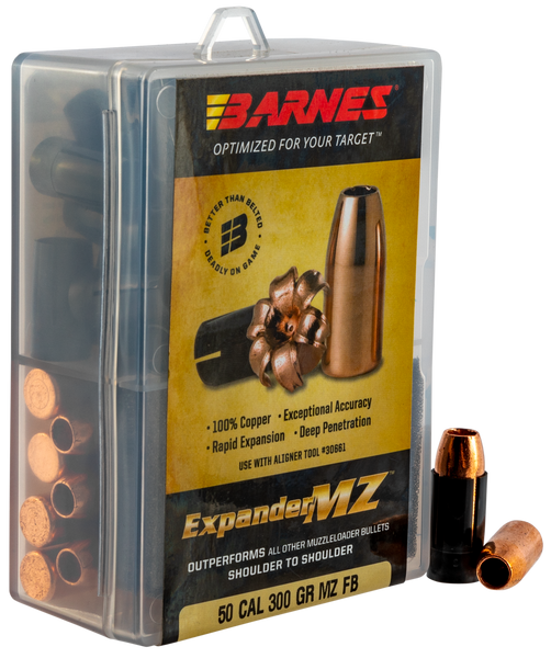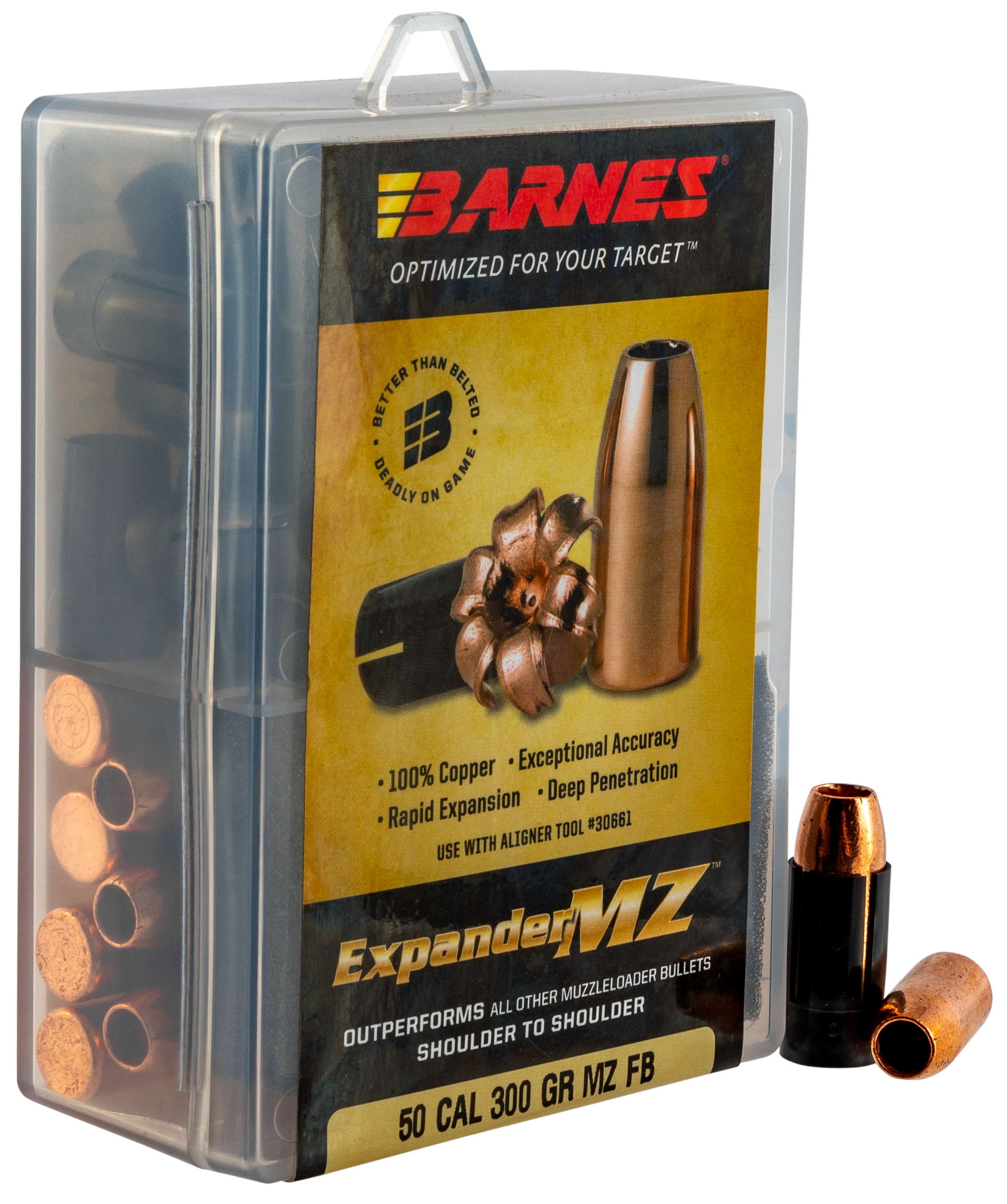 This muzzleloader version of the x-bullet is 100% copper with a large, hollow cavity for quick, sure expansion.Barnes expander mz muzzleloader bullets produce more consistent shot-to-shot velocities and better accuracy for greater shooter confidence and more one-shot kills.Expander mz bullets deliver deadly performance at both high and low velocities.These tough, deep-driving bullets typically retain 100% of their original weight.They expand to twice their original diameter, creating six razor-sharp copper petals that slice through game.