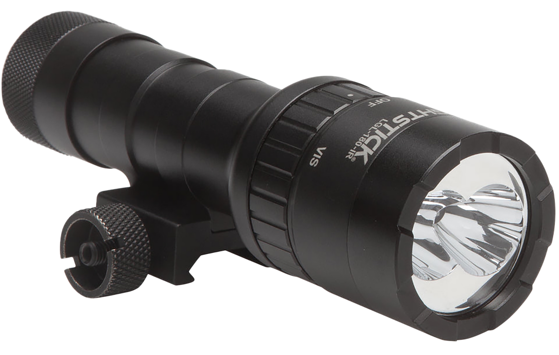 The lgl-180-ir long gun light with ir illuminator is a dual-wavelength weapon lighting system for your rifle, carbine, or shotgun.A hybrid dual reflector with two dedicated leds (ir and vis) means each beam is optimally focused for ultra-high intensity and maximum distance.The 180-ir projects 1100 lumens of visible white light out to 229 meters for 2 hours, while a separate 1400mw 940nm ir illuminator beam provides a similar range and runtime during night vision use.A rotating collar on the bezel allows the user to select visible (vis) or infrared (ir) modes, or off.The light comes installed with a standard tail cap switch and reversible thumbscrew picatinny mount.It can alternatively be mounted with the included offset picatinny mount, providing flexible options to clear front sights and other mounted equipment while allowing easy support hand activation.Both the tail cap switch as well as the included 6" remote pressure pad/switch feature momentary or constant-on modes.The kit also includes an rps picatinny rail mount and nightstick-exclusive wire management rail clamp to prevent cable snags.The 180-ir weapon light kit includes (2) cr123 batteries.As a bonus, the multi-fuel 180-ir also runs on a single 18650 lithium-ion battery.A pair of 4700-batt lithium-ion batteries and a single-cell charger are sold separately.