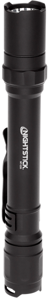 This mini-tac pro light uses an led and has a deep parabolic reflector creating a tight, long-throw beam for distance illumination.With a waterproof design, it is constructed from aircraft-grade 6061-t6 aluminum with a type iii hard-anodized finish.The tail switch provides momentary or constant-on functionality, a set of user-selectable high, medium, or low-brightness settings as well as a disorienting strobe.The light comes with a removable pocket clip and is powered by 2 aa batteries (included).