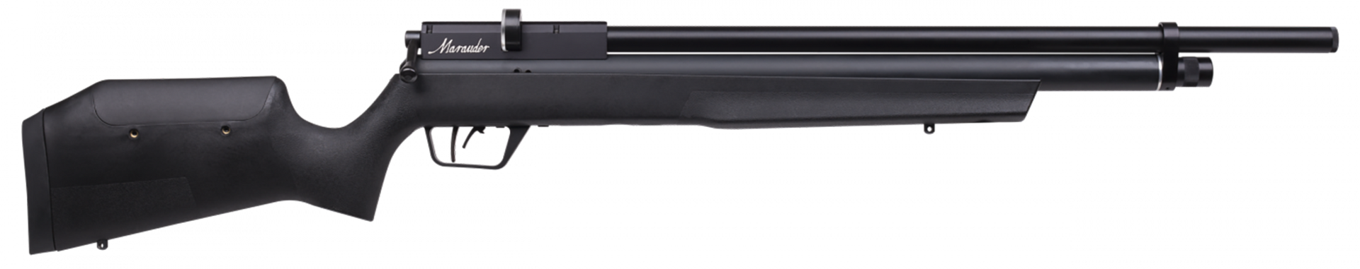 The marauder goes lightweight with an all-weather, synthetic stock and an ambidextrous raised comb, designed for well-balanced for carry in the field.This powerful pcp air rifle offers all the features needed for pest hunting small to medium sized game.The choked and internally shrouded barrel provides both precision and ultra-hushed operation, producing the most accurate and quietest rifle in its class.The two-stage, adjustable, match-grade trigger system helps to make every shot smooth and steady, while the innovative 10-round magazine (8-round in.22) allows for fast follow-up shots.With the built-in pressure gauge and quick-disconnect foster fittings, this gun is quick and easy to fill so you can refill and return to shooting sooner.The ambidextrous bolt has been adapted for a cleaner look and to keep the action debris-free.The simplified breech design makes for ease of assembly and service while providing a more stable platform for larger scopes.Benjamin made top secret changes to the valve resulting in a 12% power increase and a 30% increase in shot count (.22 and.177).The marauder has a dovetail mounting rail, sling mounts and a factory installed de-pinger to change the sharp "ping" to a dull thud resulting in a less-perceived noise level.