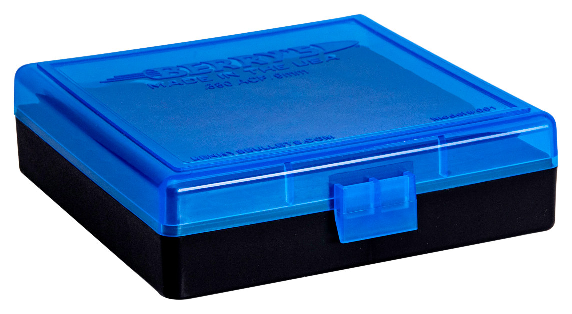 Berry's 001 100 round ammo box is made from high impact polypropylene for increased strength against cracking, chipping, warping, expansion, or contraction.The box is stack able and features a stronger, flip-top design, allowing the securing of ammo storage with easy one-handed operation.