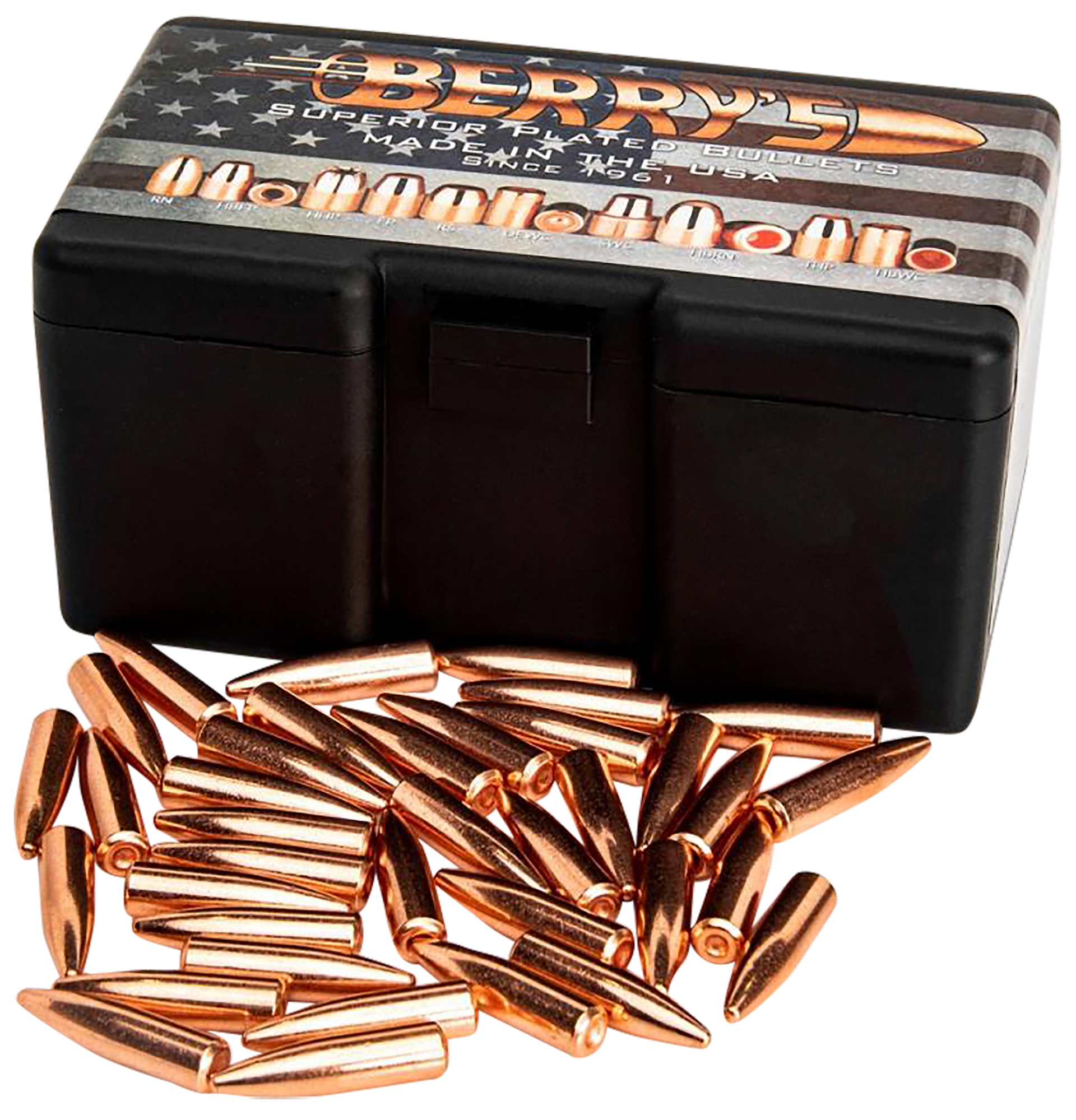 Berry's superior plated bullets are swaged and plated to final weight and re-struck for accuracy and precision.They won't foul your barrel with lead.Plated hollow base bullets are designed for shooters who need increased accuracy.The hollow base allows the bullet profile to be longer and provides more contact area with the barrel and rifling to stabilize the bullet and improve accuracy.The bullet profile is longer but the weight remains the same and you can load these bullets using any published load data for a jacketed bullet as long as it is the same weight bullet.