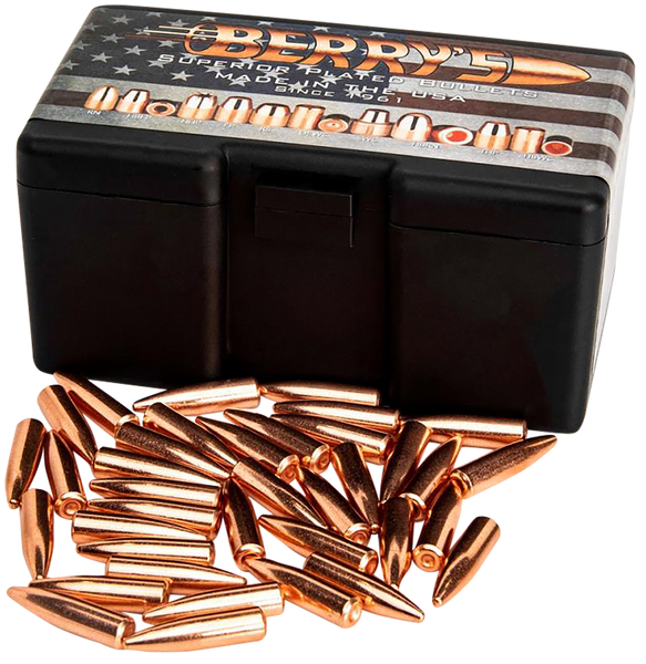 Berry's superior plated bullets are swaged and plated to final weight and re-struck for accuracy and precision.They won't foul your barrel with lead.Plated hollow base bullets are designed for shooters who need increased accuracy.The hollow base allows the bullet profile to be longer and provides more contact area with the barrel and rifling to stabilize the bullet and improve accuracy.The bullet profile is longer but...View more