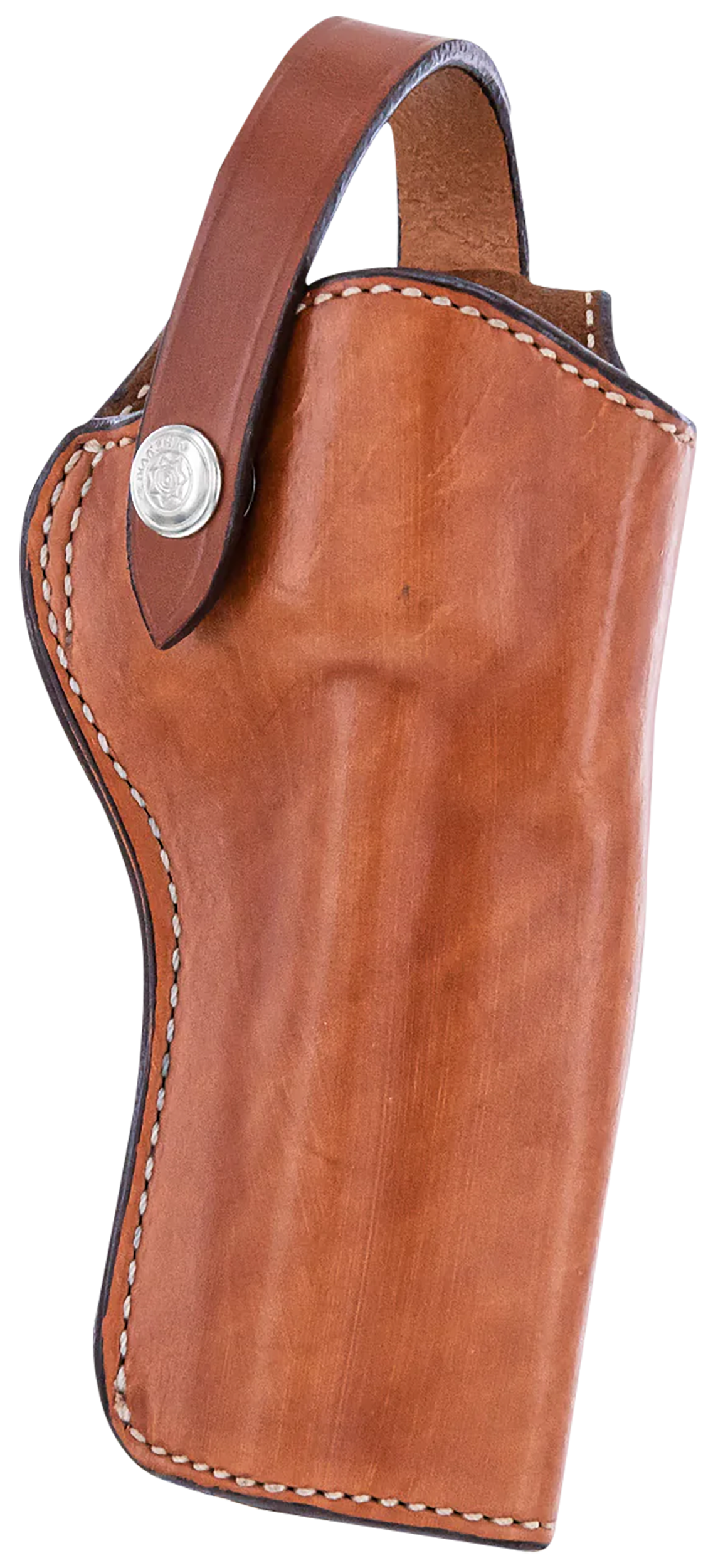The sleek, 1l lawman holster is designed for hi-ride carry with single-action revolvers.Constructed of full-grain vegetable-tanned cowhide, it features clean lines that deliver the classic look and feel of traditional western holsters.The front strap closure wraps behind the hammer, offering secure retention.The holsters fold over belt loop is made for 1.75 in.(45 mm) to 2.25 in.(58 mm) belts and holds the revolver at an optimum drawing angle while riding in vehicles or on horseback.Meticulously crafted, the 1l lawman holster is suede lined with ivory stitching and has an open muzzle.This model is compatible with colt new frontier and 4.75" barrel single action army.