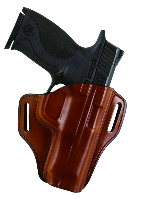 The 57 remedy concealed weapon holster offers an open-top design for semi-automatics and small frame revolvers and provides quick and easy access to the gun.This model features deep contour molding on the front of the holster for improved comfort and to reveal the shape of the handgun it secures.Designed for hip or rear hip carry, the model 57 is a leather belt holster of timeless style and quality.