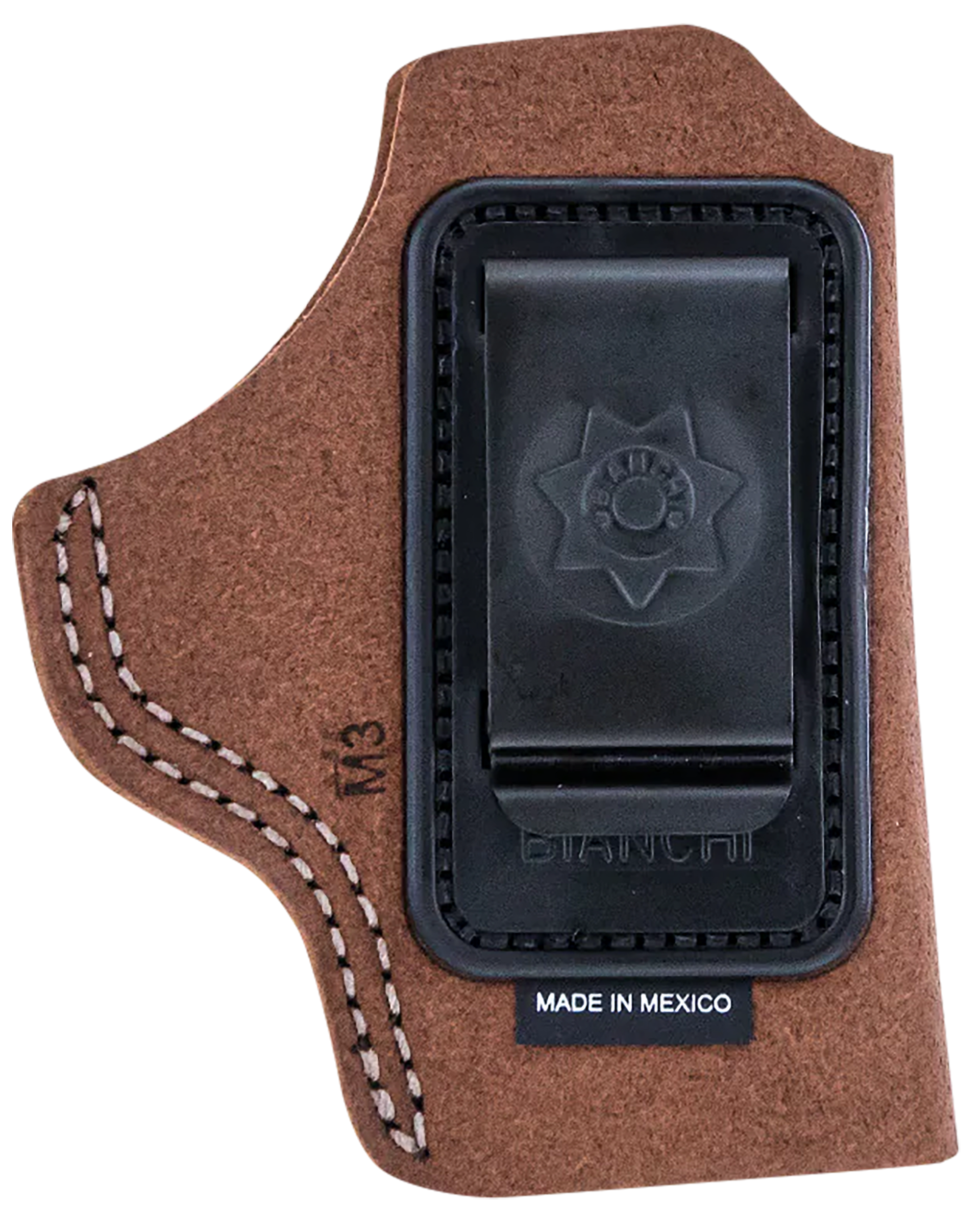 Bianchi's waistband holster is ultra-thin, lightweight, and ideal for casual carry.The soft suede, double stitched construction makes this a comfortable holster with a heavy-duty spring steel clip that fits up to 1.75" belts and an adjustable thumb break.Fits 2" charter arms; colt; ruger; s&w & similar j-frame; taurus.