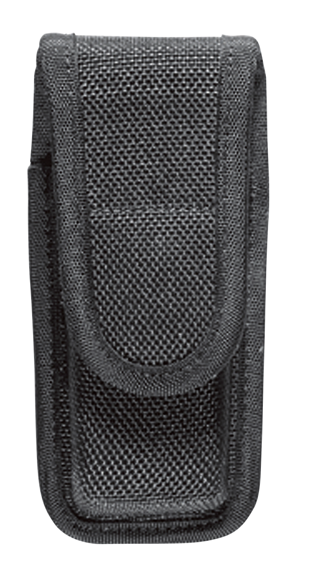 The model 7303 single magazine/knife pouch features vertical carry with a hook and loop closure to secure the item.It is custom molded and contoured for long lasting shape and precise fit.Featuring accumold trilaminate construction with ballistic weave exterior and coptex lining, the pouch cavity expands both front and rear for a trim look.The dual web belt loop design accommodates both 2" (50mm) and 2.25" (58mm) belts.