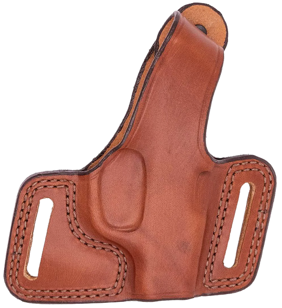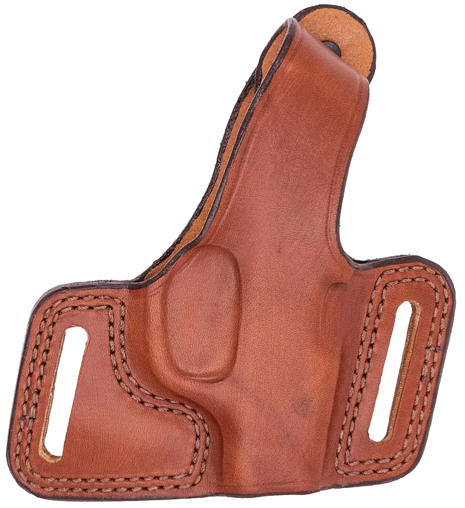 The black widow belt slide holster is worn on the hip and offers an ultra hi-ride carry and a thumb snap closure.The dual belt slots provide stability, and its open muzzle design offers pistols of the same model with different barrel lengths.Its compact profile and widely spaced belt slots allow the pistol to ride close to the body for both comfort and concealability.