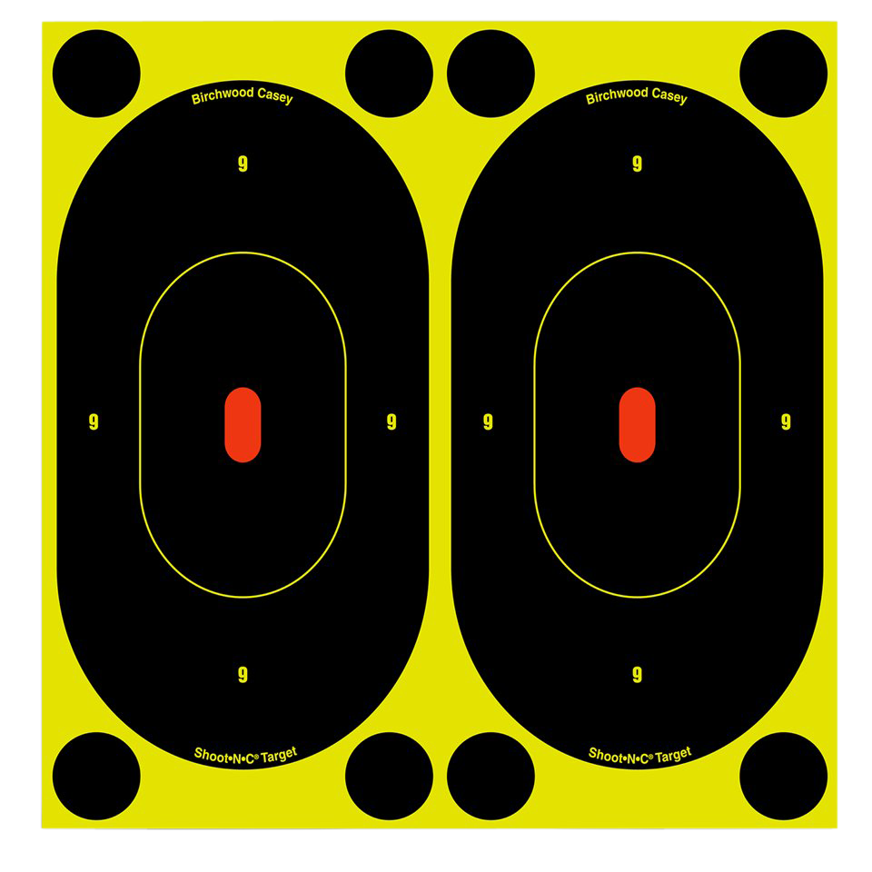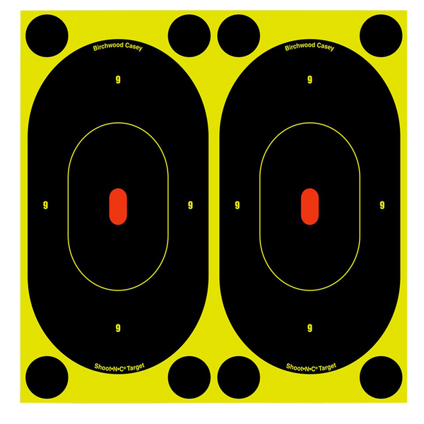 The birchwood shoot-n-c 7" silhouette targets are great for handguns and shooting ranges.Bullet holes are easy to spot with bright chartreuse rings on these self-adhesive targets.Includes 240 repair pasters to lengthen target life.Enhancement Color: ChartreuseType: TargetSize: 7"Quantity: 60 PackMaterial: PaperIllustration: 7" Oval SilhouetteIncludes: PastersAuto Resetting: NoImpact Enhancement: YesMount Type: Self-AdhesiveTarget Color: Black/YellowView more