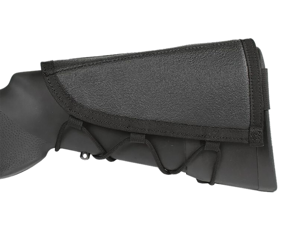 Blackhawk ammo cheek pad carries ammo on your gun and raises the comb height for improved alignment with large tactical scopes.Shell Count: 5Type: Ammo HolderColor: BlackMaterial: NylonSize: AdjustableModel: Ammo Cheek PadFinish: Non-SlipModel Fit: RifleMount Type: ButtstockCompartments: 1View more