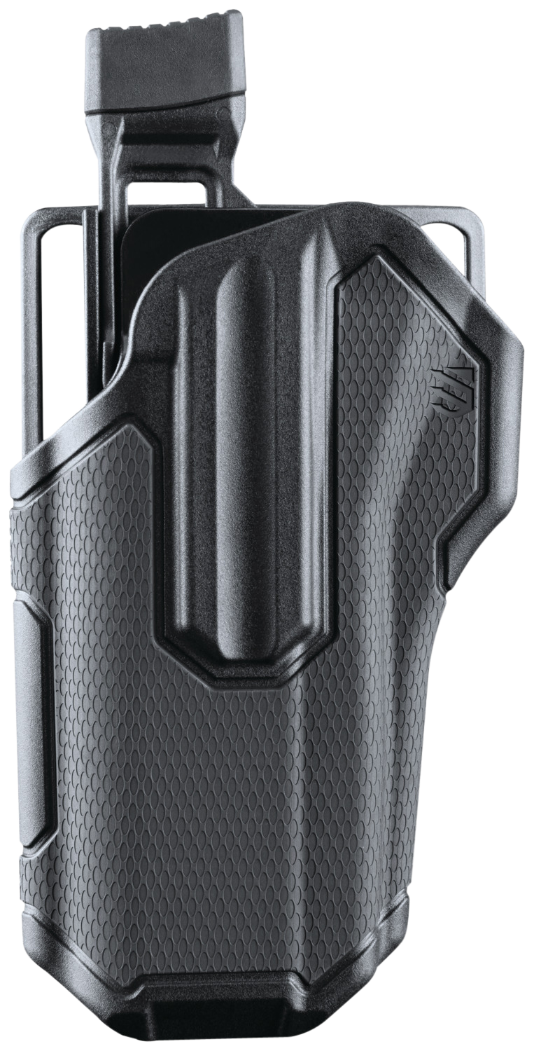 The blackhawk's omnivore multi-fit holster accommodates more than 150 styles of semi-automatic handguns.The active retention mechanism locks onto a proprietary rail attachment device, not the frame of the handgun for the non-light bearing model.Its instinctive thumb release disengages the locking mechanism from the rail attachment device when drawing the handgun.Fits most non-light bearing semi-autos.