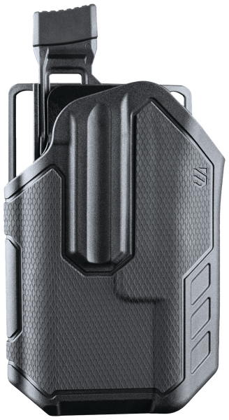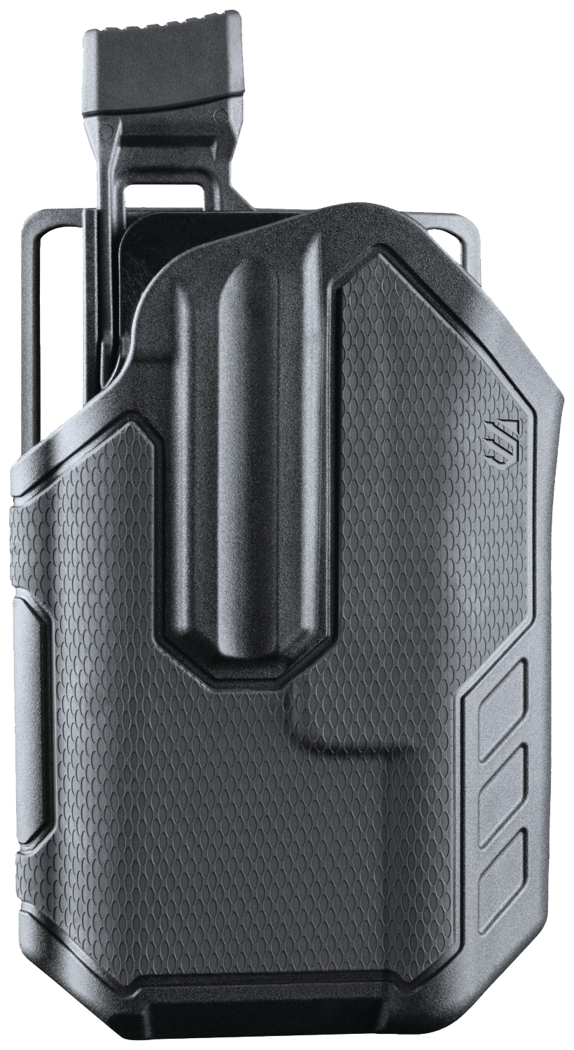 The blackhawk omnivore multi-fit family of holsters accommodates more than 150 styles of semi-automatic handguns.Its active retention mechanism locks onto a proprietary rail attachment device, and onto the streamlight tlr1/2 models.The instinctive thumb release disengages the locking mechanism from the rail attachment device when drawing the handgun.