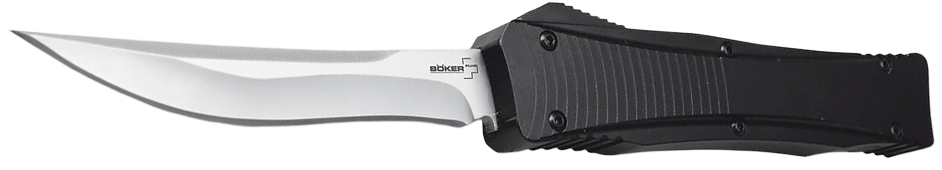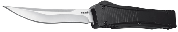 The boker plus eagle otf, designed by raimund lhotak, fits perfectly in the hand thanks to its titanium-coated handle and ergonomic design.The reliable mechanism opens and closes the blade by spring force via the release slide, which guarantees quick operation.The breathtaking dynamic grinding lines and the two-tone finish also make this knife an exquisite collector's item.With recurve blade made of d2.