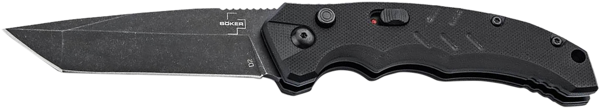The boker plus intention, designed as a tactical automatic knife, is not only convincing in action, but also handles all everyday cutting tasks effortlessly.Pressing the push button releases the d2 blade, which then opens automatically due to the tension of the spring behind it.A neatly locking sliding safety catch additionally secures the knife against accidental release.The ergonomically shaped handle is made of textured, black g10,...View more