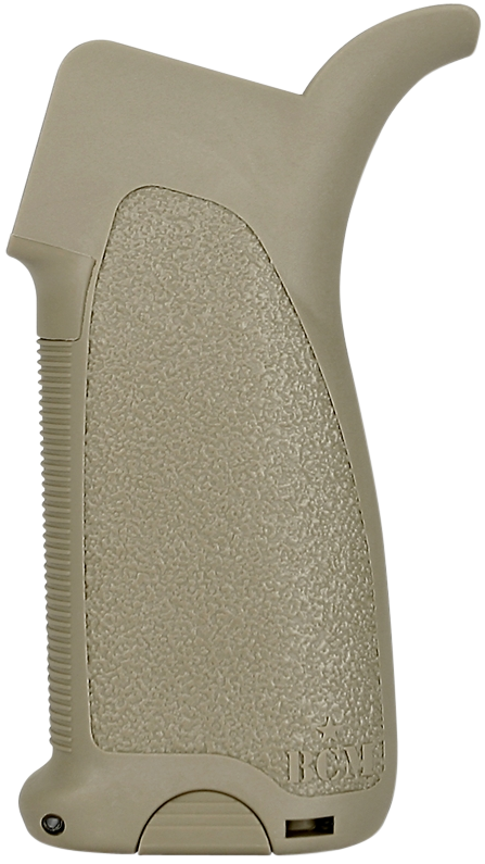 This pistol grip features a hinged trap door which offers storage inside the grip with a water resistant rubber gasket.The grip includes both an extended modular insert to close the gap between the trigger guard and pistol grip, and a smooth modular insert for use with some rifles with larger built in trigger guards.
