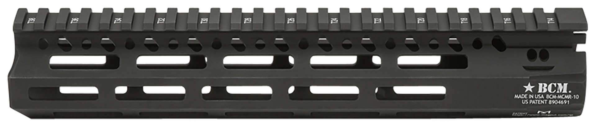The bcm mcmr is a free float handguard that eliminates loads from the barrel, reducing the deflection for more accurate shooting.The mcmr features a m-lok compatible mounting system, a steel barrel nut to resist movement under heat, and has a black hard coat anodized finish.