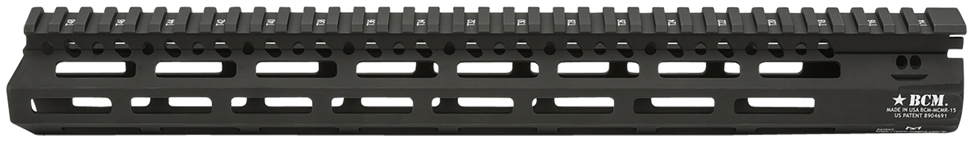 The bcm mcmr is a free float handguard that eliminates loads from the barrel, reducing the deflection for more accurate shooting.The mcmr features a m-lok compatible mounting system, a steel barrel nut to resist movement under heat, and has a black hard coat anodized finish.