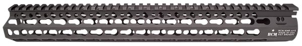 Bravo's kmr alpha is constructed of aluminum with a hardcoat anodized finish for corrosion resistance and is free-floating.Its interface system was developed to work in parallel with the current picatinny system.This rail system allows for a larger range of modularity offering four different offset mounting positions between traditional 3,6,9, and 12:00 positions.