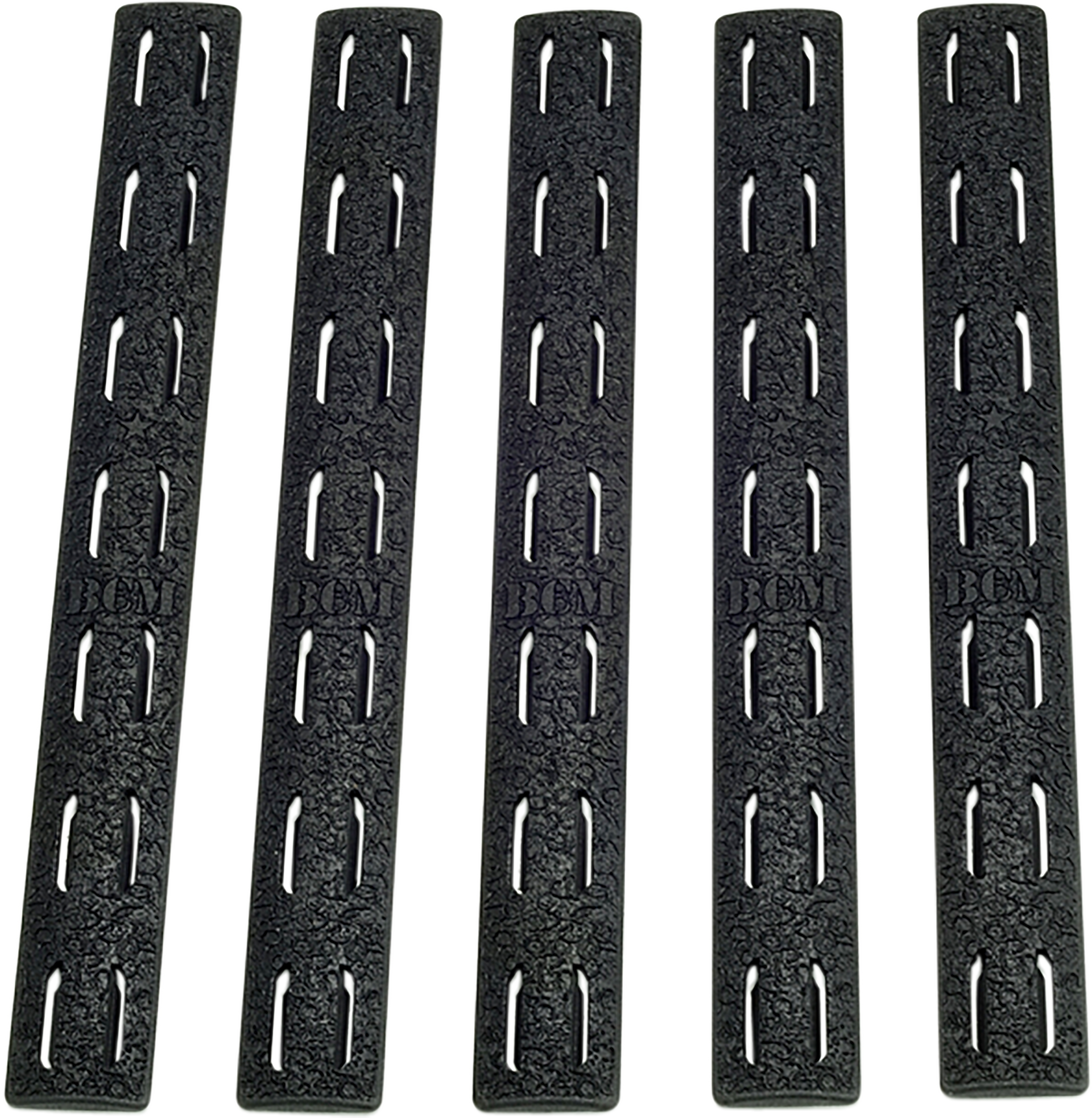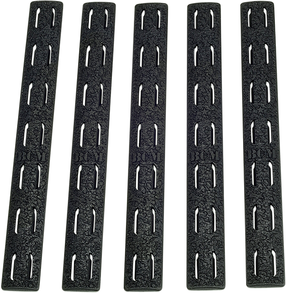 This keymod rail panel kit is made to fit all keymod mounting surfaces with 7 consecutive keymod slots.It has a ultra-slim and radiused surface which allows a "round" handguard feeling, from an octagonal profile, aggressive non-slip or non-reflective surface and is ventilated for cooling.Included is a bi-directional locking tabs on either end, depending which direction they are installed and five matching color keymod panel strips.