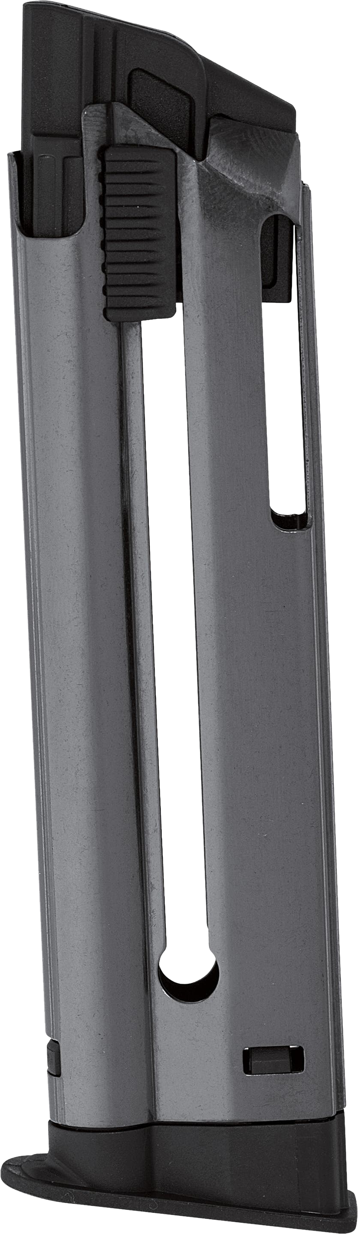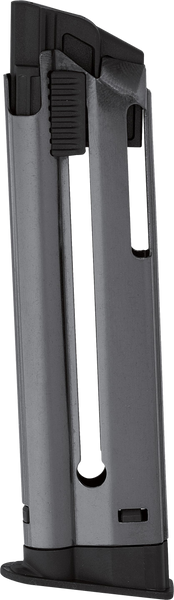 This magazine is a detachable box style with a heat treated steel body.It has a steel coil spring for maximum feeding reliability with all types of factory ammunition including modern defensive hollow points.