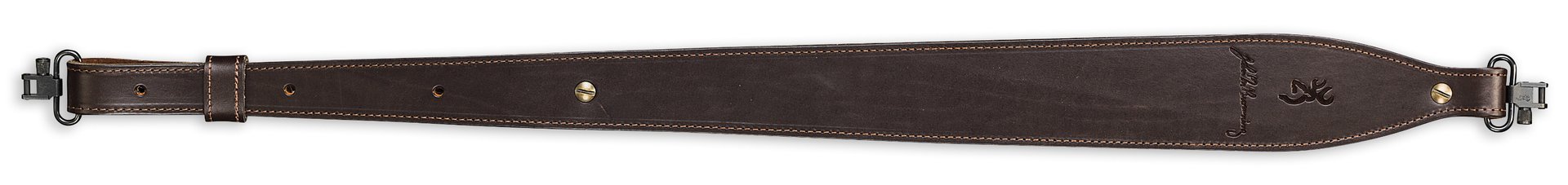The jmb signature sling is made from top grain leather and has a suede backing, edge stitching, brass hardware, and features the signature of john m.Browning.Metal sling swivels are included.