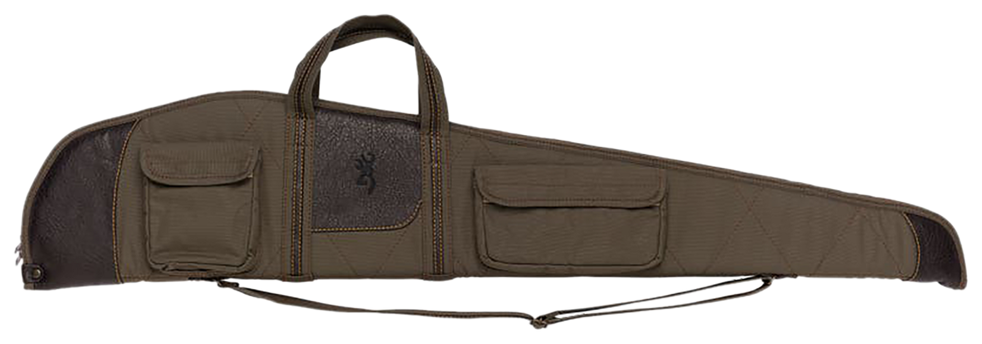 Style and function combine in the laredo rifle case.The outer shell is a handsome olive cotton canvas with contrasting stitching and embossed leather accents.A pair of pockets help you keep track of ammunition and ballistic cards.The padded carry handles and shoulder strap make transporting your rifle easy.From the safe to your vehicle to the firing line, the laredo ensures your rifle and optics are padded against bumps and scratches.