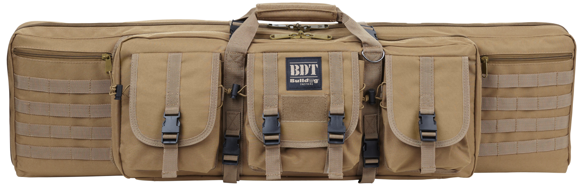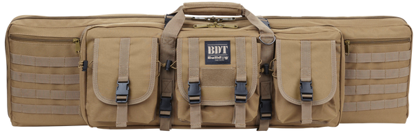 Bulldog's bdt tactical rifle case features a lockable zippered rifle compartment with adjustable velcro tie downs and quilted lining.It is constructed of a heavy-duty nylon with oversized metal zippers and pulls, deluxe padded backpack straps, and three high-vis lined accessory pockets for added visibility.The case also has a lockable zippered accessory and extra magazine compartment.