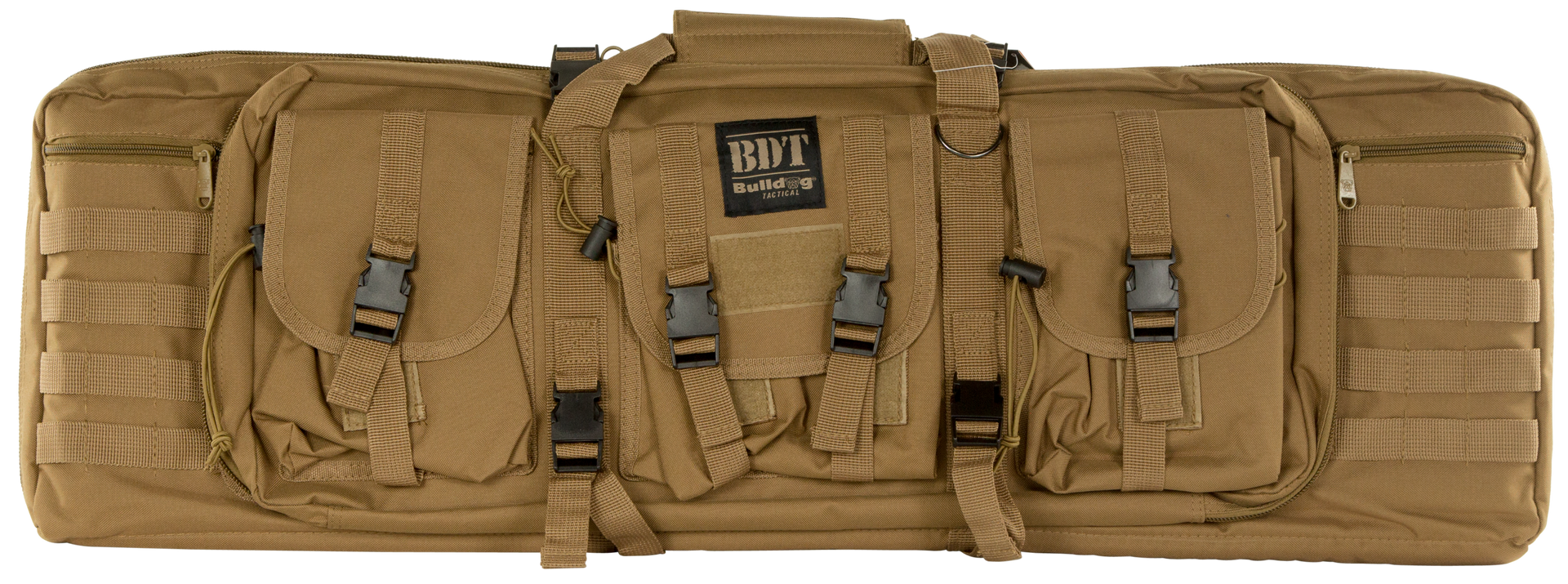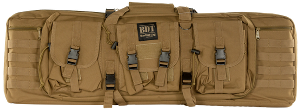 Bulldog's bdt tactical rifle case features a lockable zippered rifle compartment with adjustable velcro tie downs and quilted lining.It is constructed of a heavy-duty nylon with oversized metal zippers and pulls, deluxe padded backpack straps, and three high-vis lined accessory pockets for added visibility.The case also has a lockable zippered accessory and extra magazine compartment.